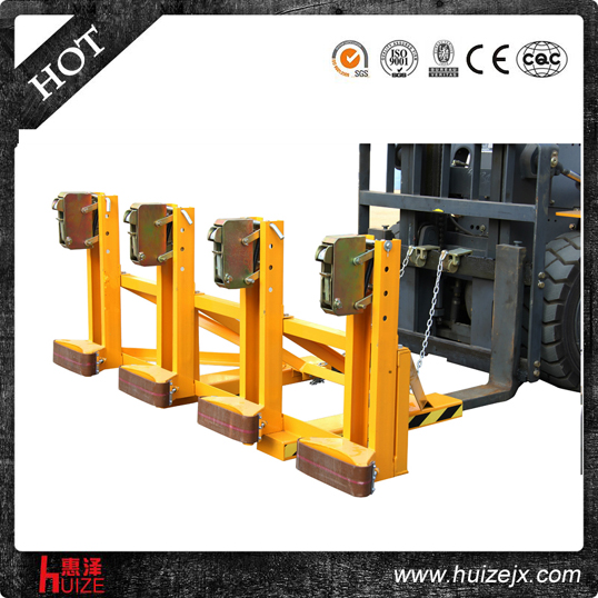 重型四油桶夾單鷹嘴DG2000A純機(jī)械機(jī)構(gòu)設(shè)計(jì)可與叉車方便地配合,僅依靠叉車的動(dòng)作,不需要其它的動(dòng)力,可自動(dòng)一次搬運(yùn)4個(gè)鋼制油桶, 配置可拆換式柔性耐磨保護(hù)墊,有效保護(hù)油桶并緩沖叉車行駛過(guò)程中的震動(dòng), 能在集裝箱等這樣狹小的環(huán)境內(nèi)裝卸桶裝物質(zhì),可極大地提高空間利用率, 與貨叉連接配有自鎖裝置確保油桶夾在坡度上和顛簸路面使用時(shí)不會(huì)滑落.